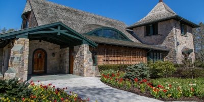 Designed by award-winning architect Robert A.M. Stern, the chapel’s stone and shingle exterior complements the historic architecture of Salve's Ochre Point neighborhood. Features include a set of 13 leaded opalescent glass windows created by renowned artist John La Farge and a bell tower housing three 1910 bells cast by the Meneely Bell Company.