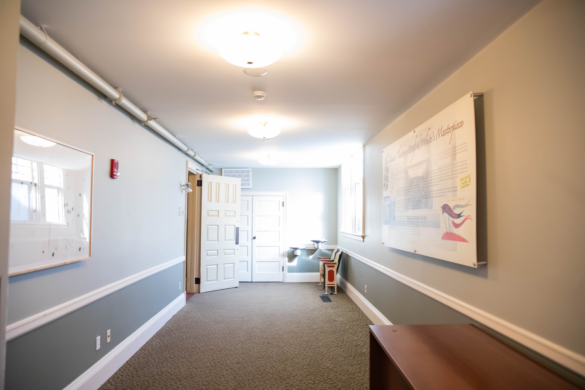 After falling into disrepair in the late 1980s, the Casino Theatre was closed due to structural concerns. The building was restored in 2010 through a partnership with Salve and the International Tennis Hall of Fame. The award-winning restoration kept intact the Victorian shingles and gilded ornamentation and even restored the green velvet seats with their original top hat racks beneath.
