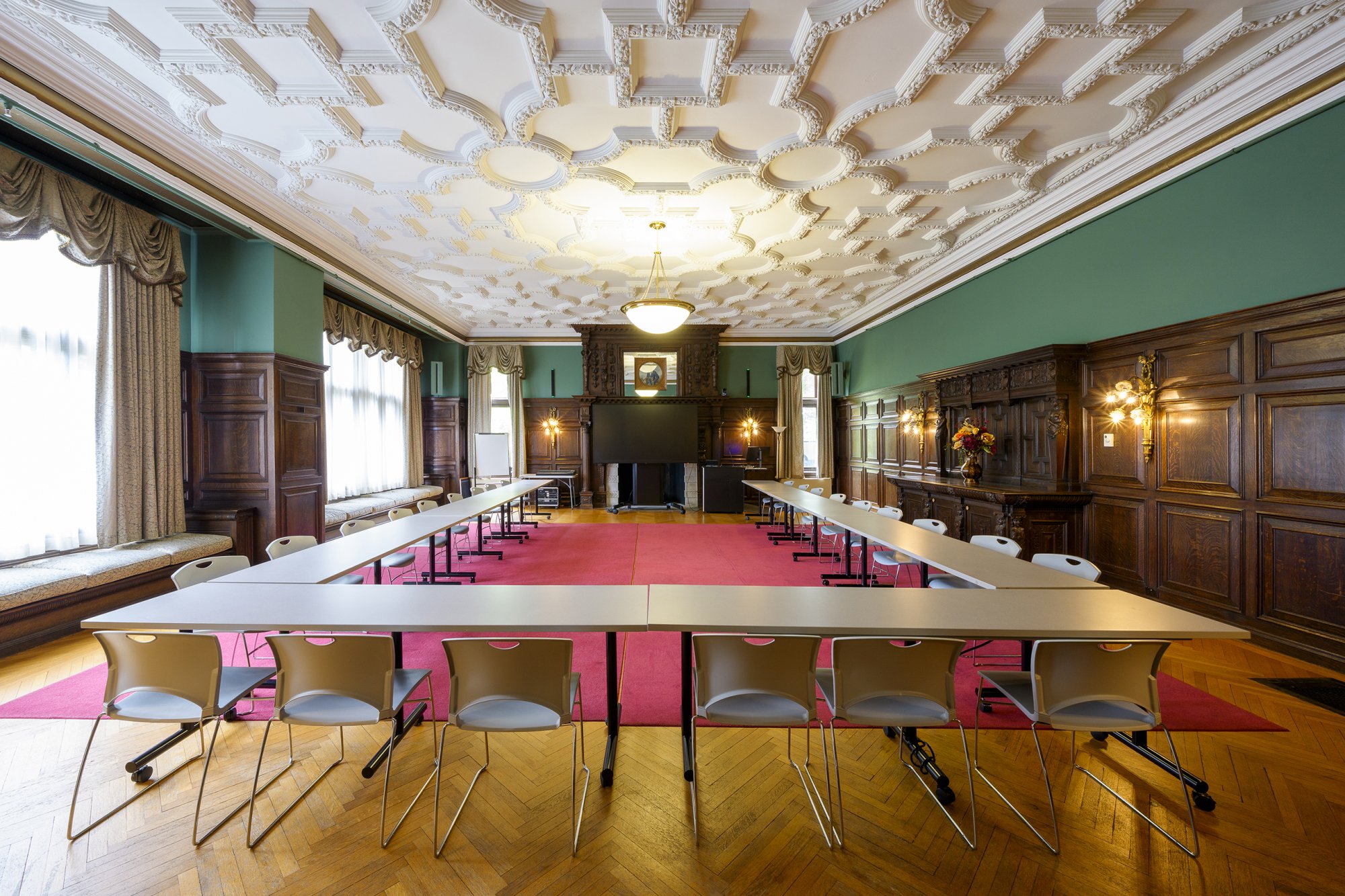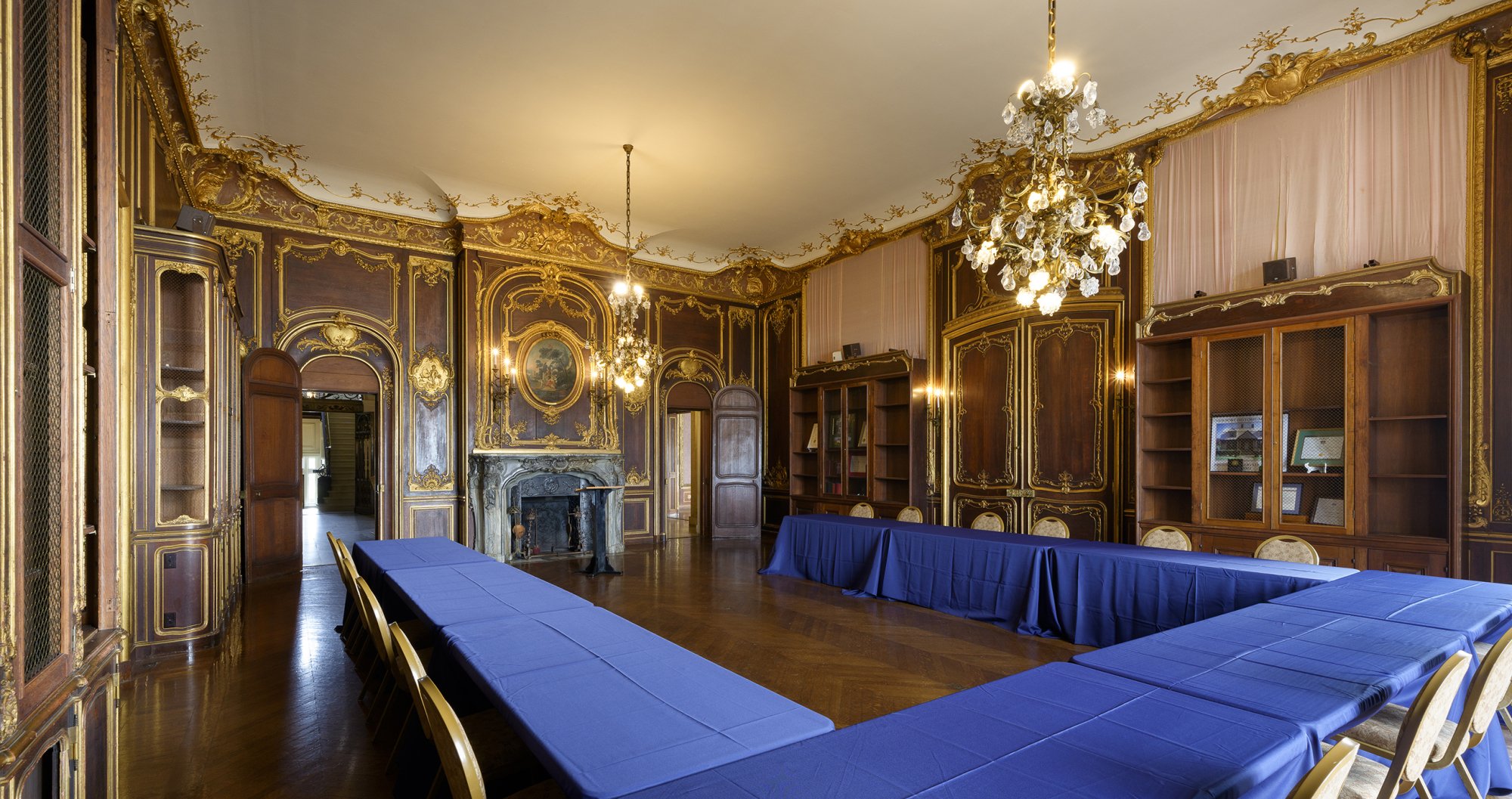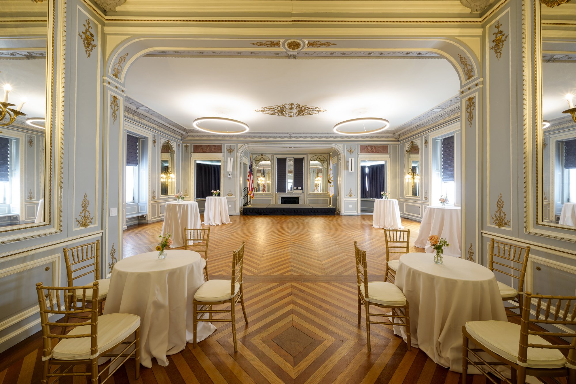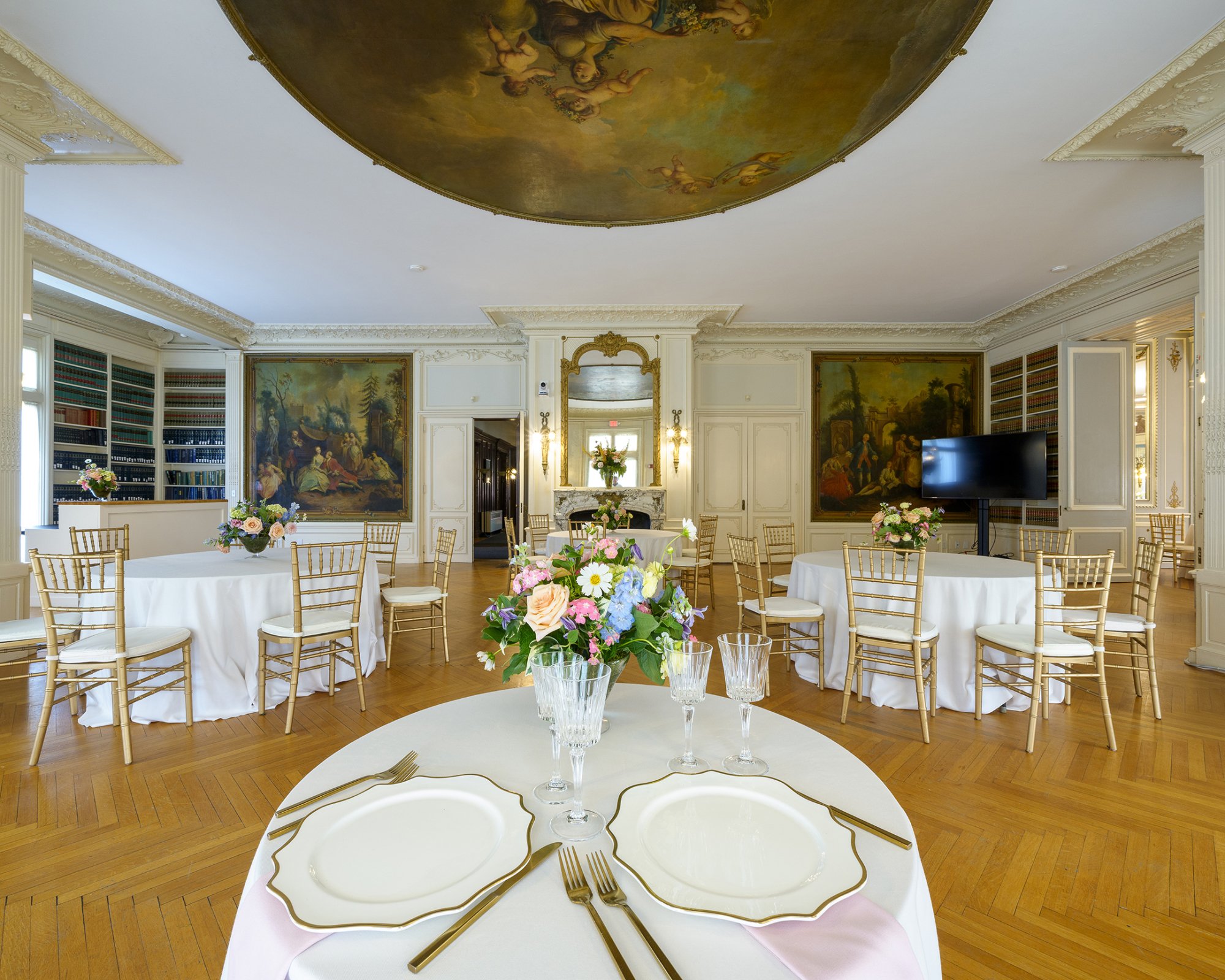 Set at the edge of campus on the famed Bellevue Avenue, the Young Building is as well known for its history as its design. Wrought iron gates and a mosaic-tiled floor at the front entrance lead to the great hall with its beautiful carved staircase. The dining room, paneled in dark carved wood under an ornamental ceiling, seated up to 100 guests. Benjamin Harrison’s vice president, Levi P. Morton, bought the property in the late 1860s and commissioned Richard Morris Hunt, designer of Ochre Court, to build a ballroom on the south side. You can book the entire building, which includes residential rooms, a boardroom and two elegant rooms that can be used lecture style or for a conference, gala dinner or reception.